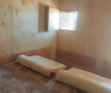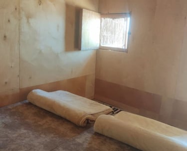 Vi legger to madrasser på gulvet.